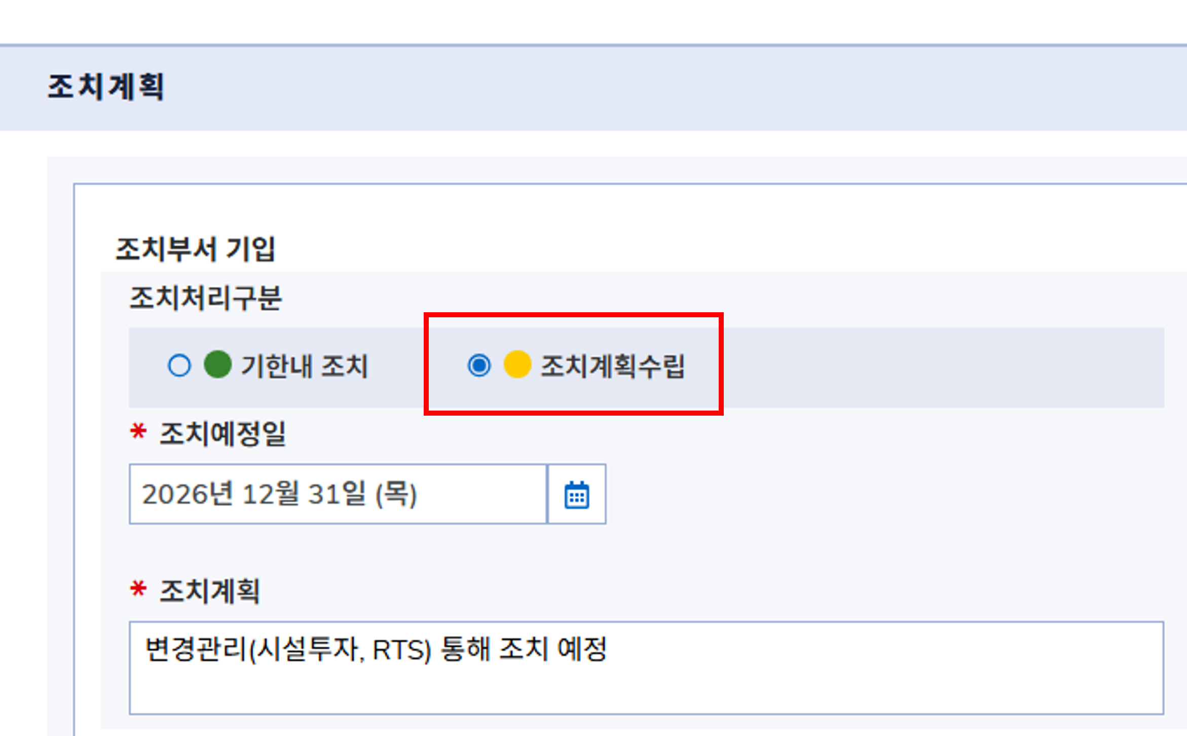 💡 기한 내 조치가 가능한 경우에는 계획 수립이 필요하지 않아요. |