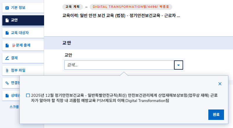 💡 동일한 교육 구분의 교안만 선택할 수 있습니다. |