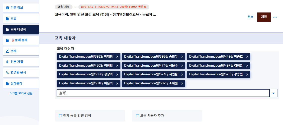 👉 교육 대상자 탭 > 교육 대상자 선택