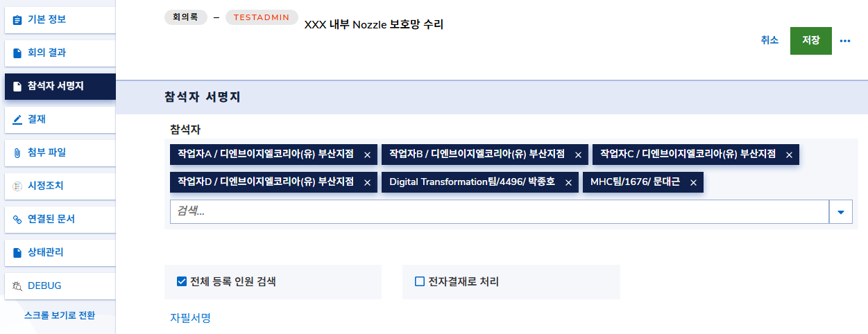 ③ 참석자 서명지 첨부파일 탭 첨부 (종이 사용)