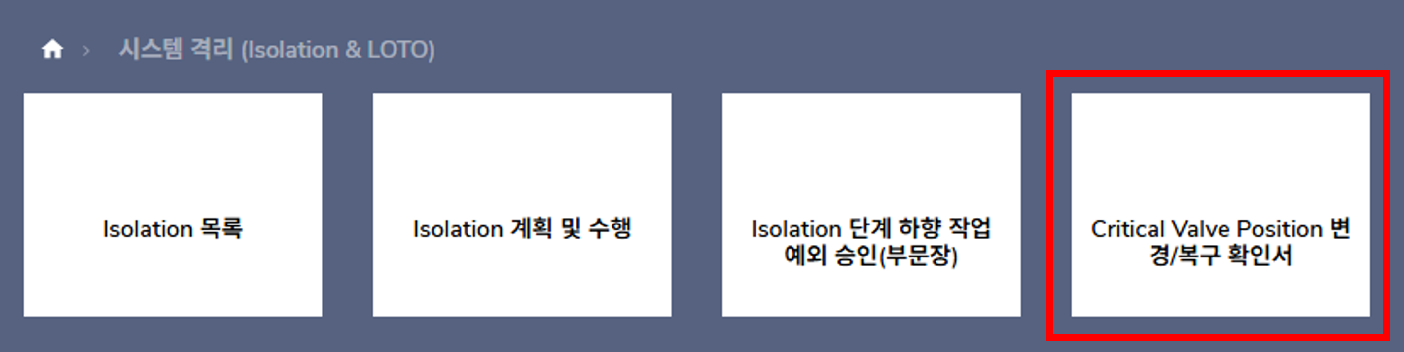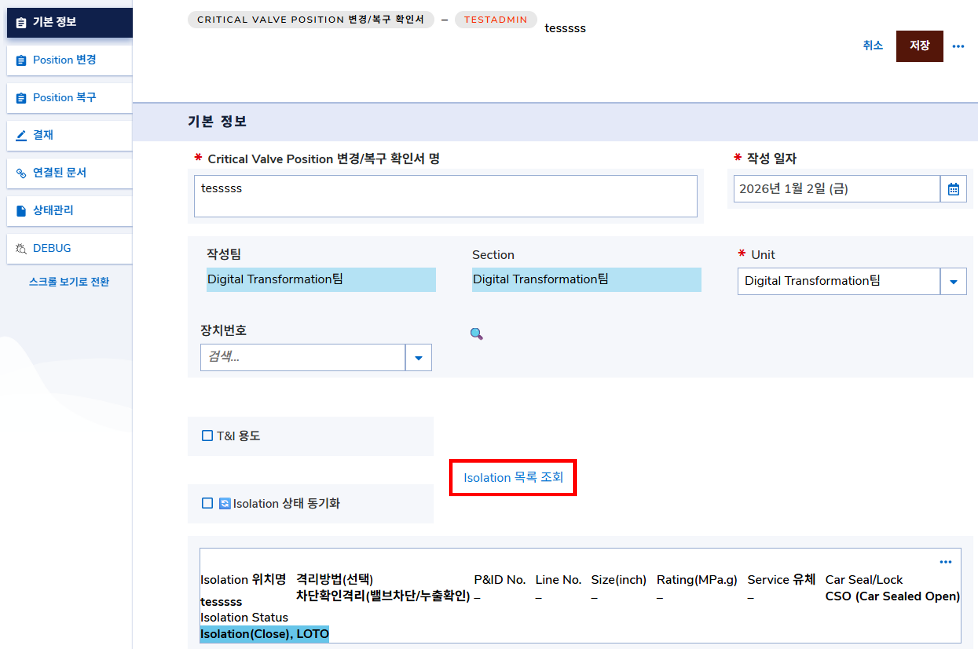 👉 PSORMS 결재/관리 > 시스템 격리 > Critical Valve Position 변경/복구