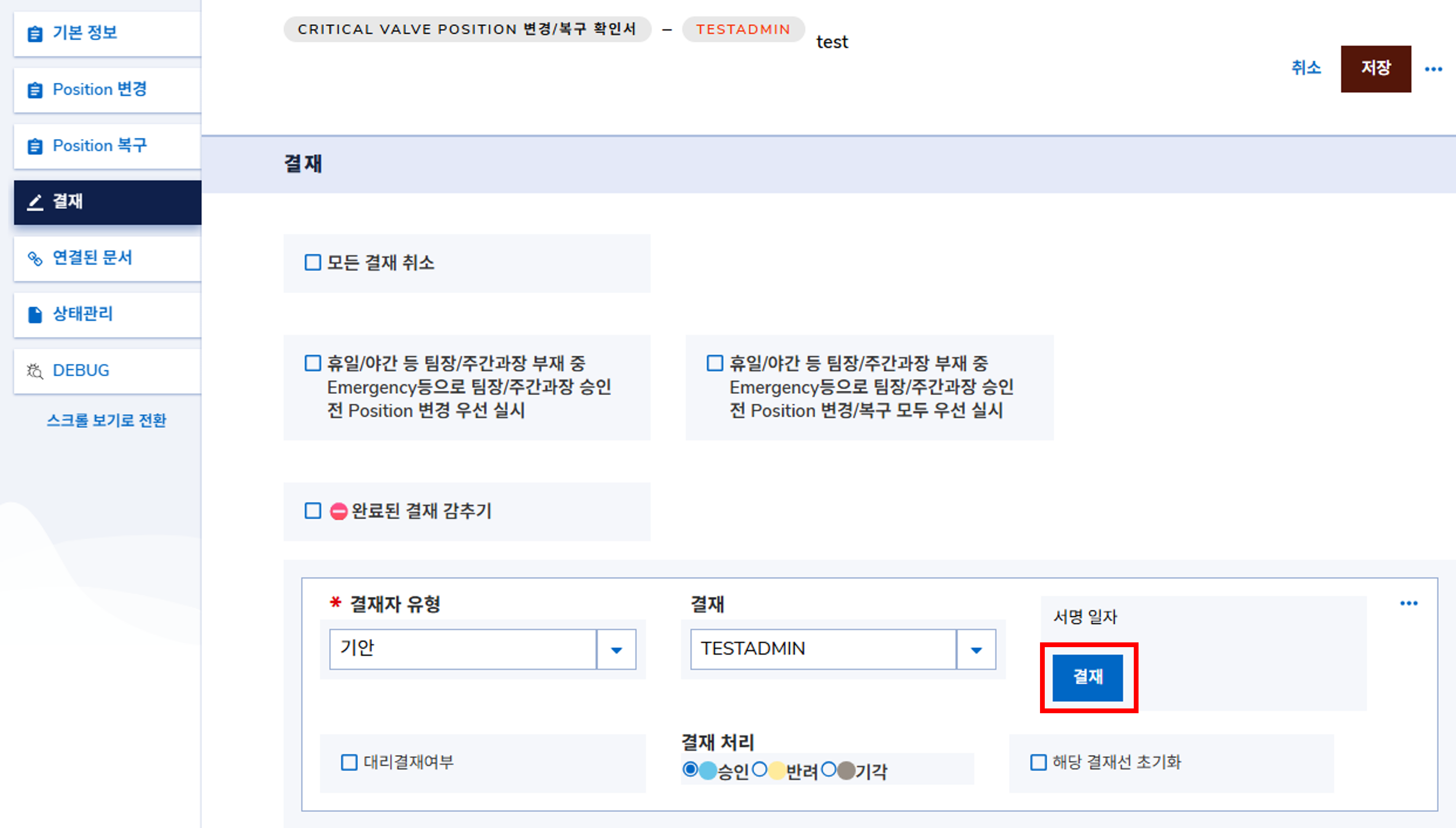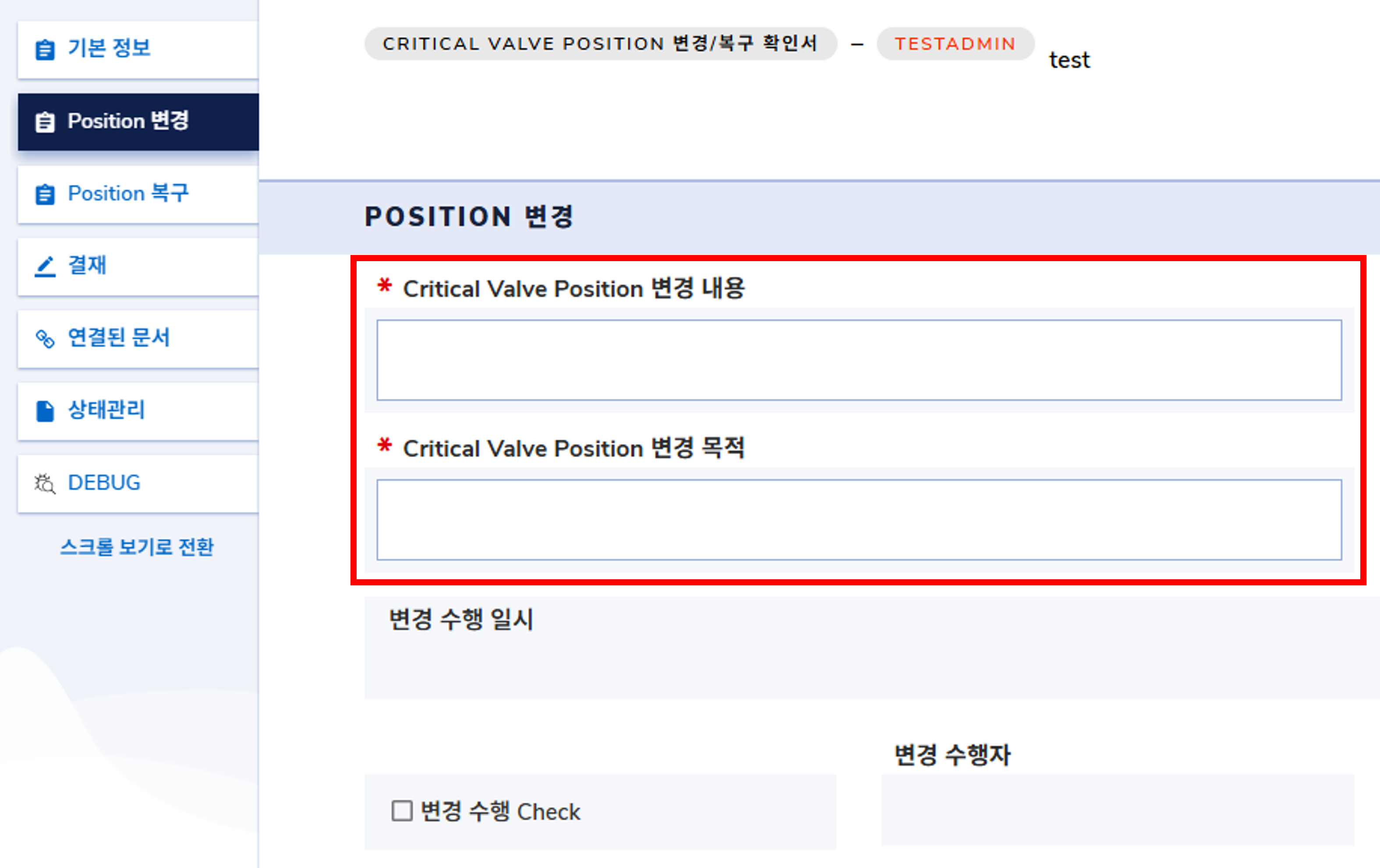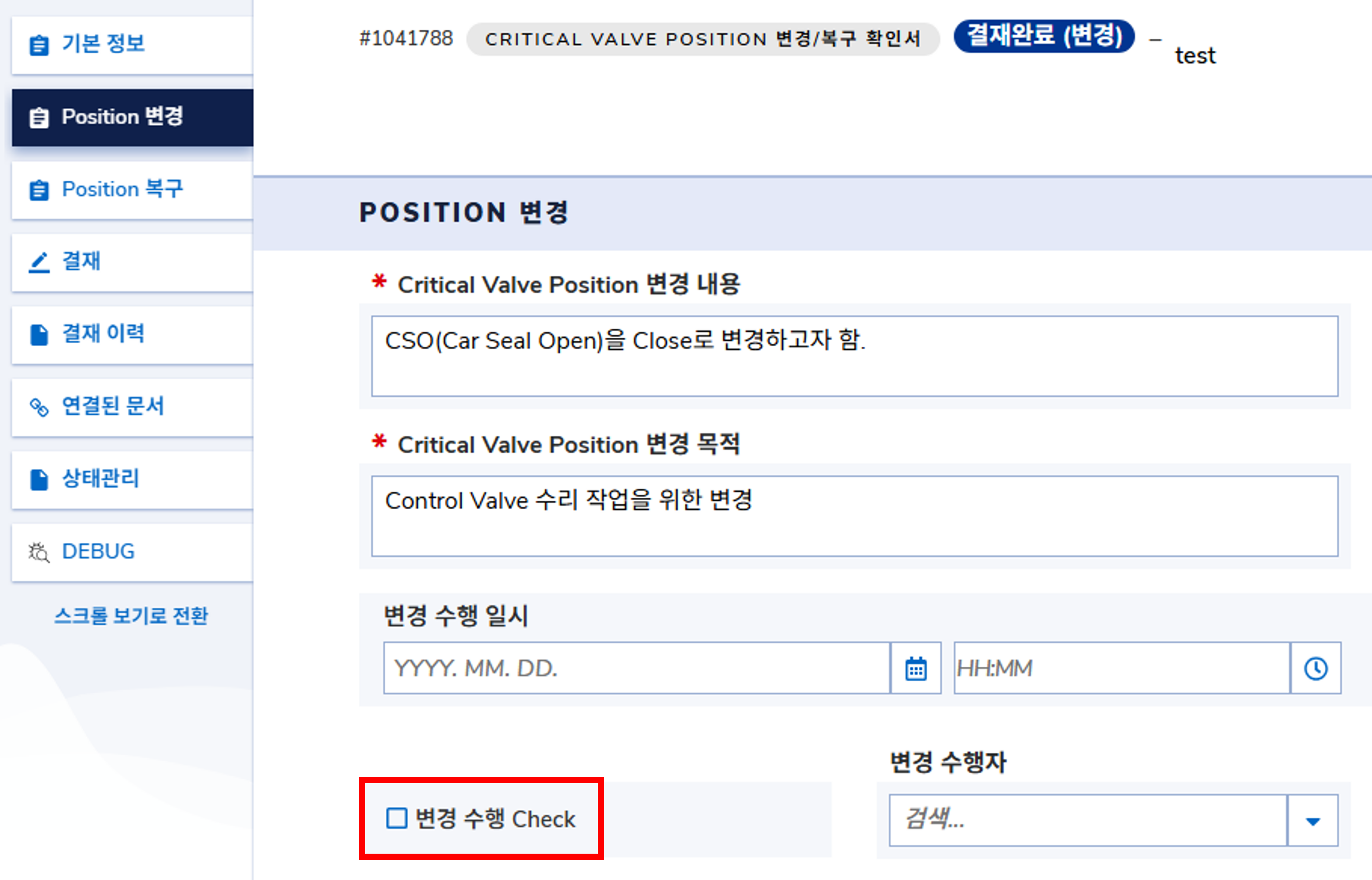 Critical Valve Position 변경 결재